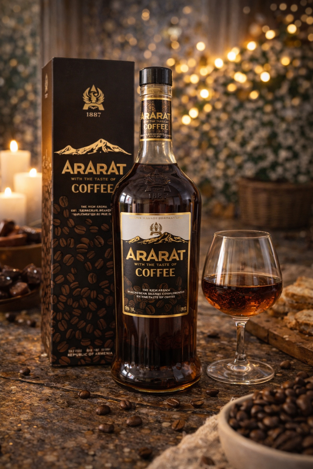 Ararat Coffee 0,7L biedt het beste van twee werelden: de diepgang van premium brandy en de aromatische intensiteit van koffie. Een must-have voor de liefhebber van exclusieve dranken!